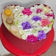 Коробка-сердце с розовыми гвоздиками и розами