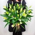 Коробка желтых французских роз с тюльпанами