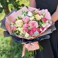 Букет розовых пионовидных и кустовых роз