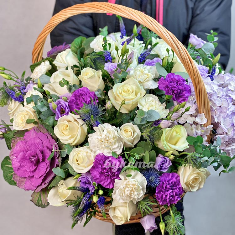 Большая корзина роз с гвоздиками