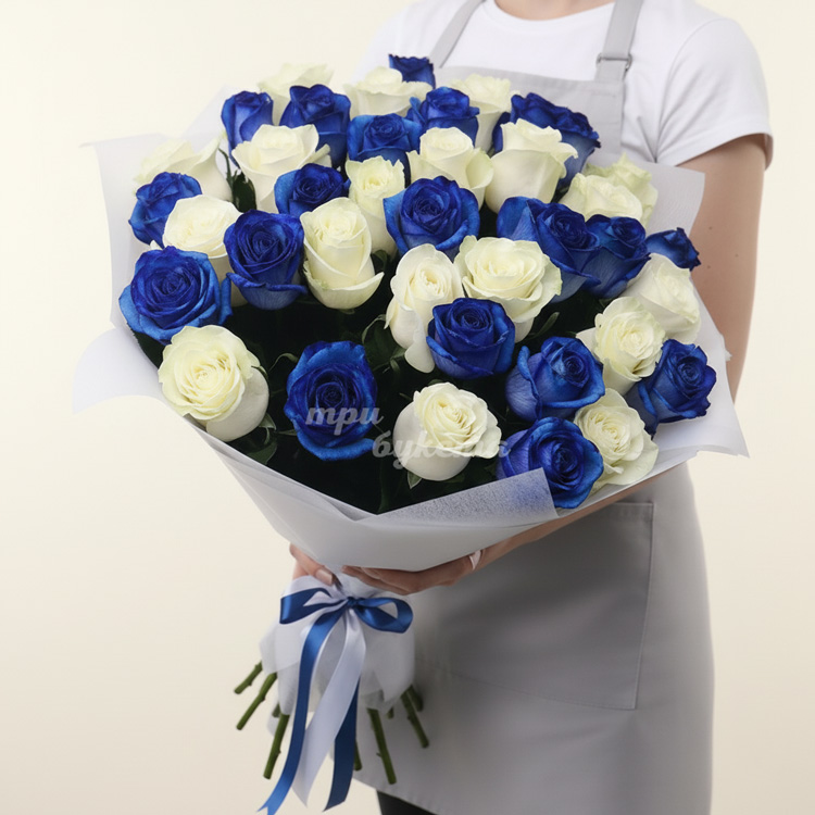 Букет из 37 синих и белых роз