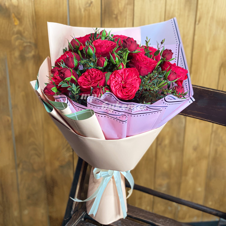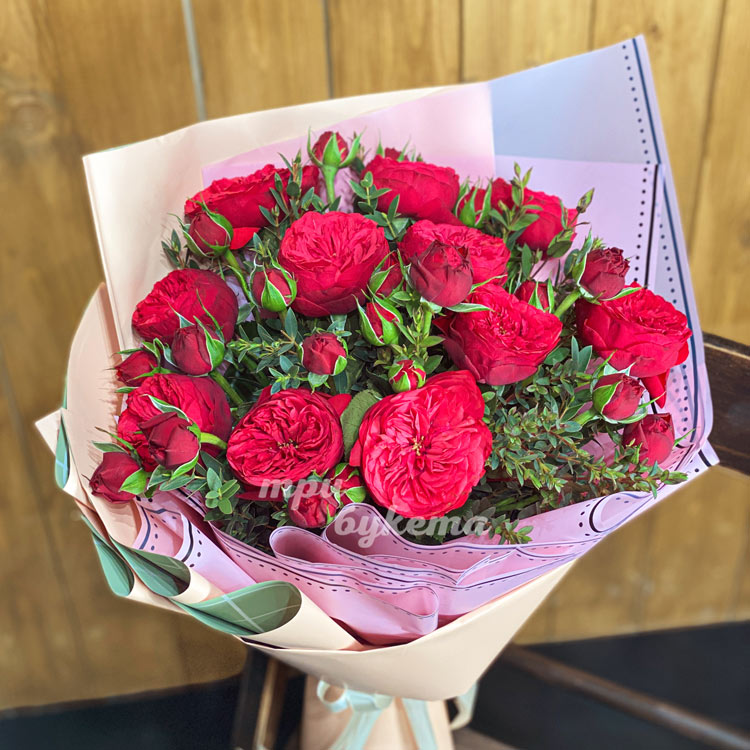 Букет из 7 алых пионовидных роз
