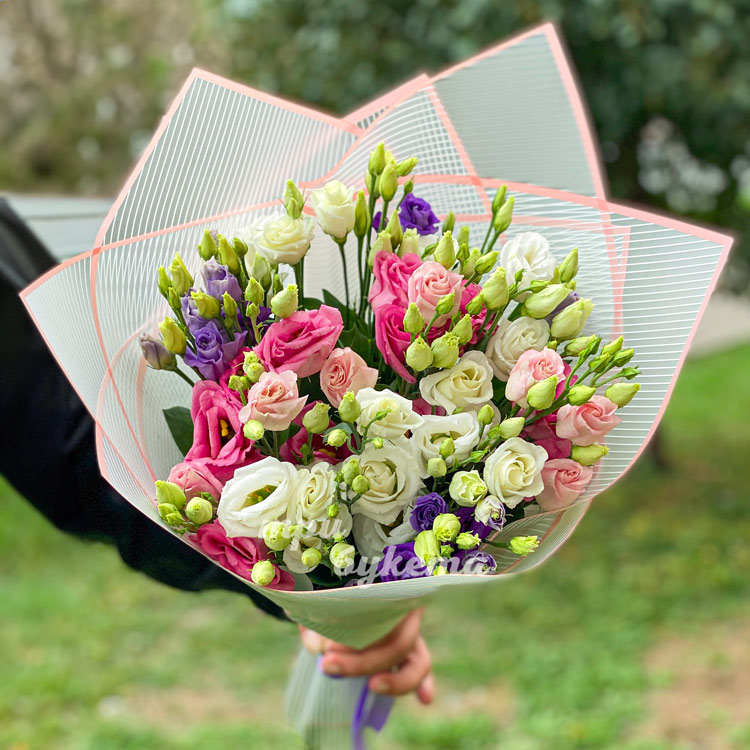 - Разноцветные эустомы, 9 шт.