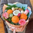Букет из фруктов и пионовидных роз