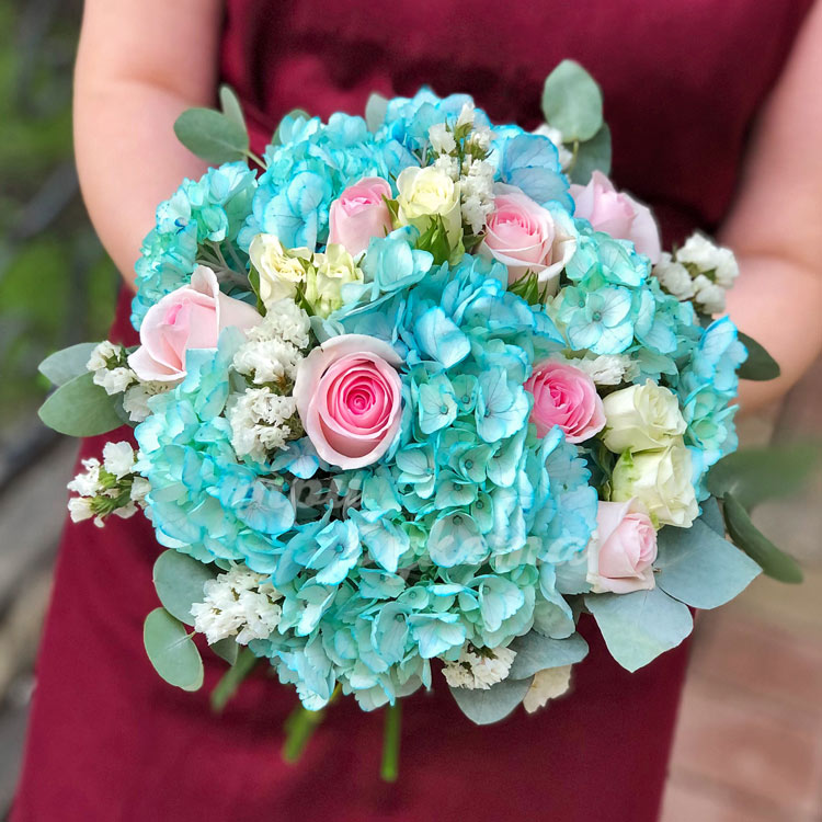 Букет из голубых гортензий и роз