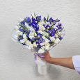 Букет из синих ирисов и нарциссов