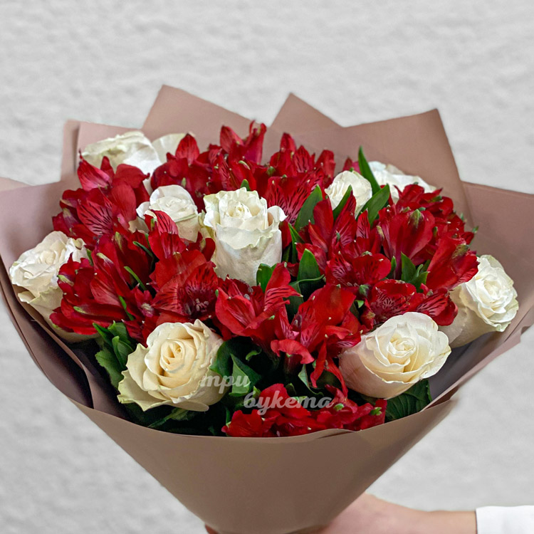 Букет красных альстромерий и белых роз