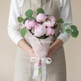 Букет розовых французских роз и эустом