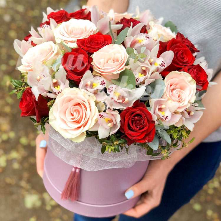Букет в шляпной коробке «Эмма»