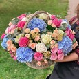 Голубые и розовые гипсофилы в корзине