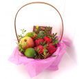 Кокос, груши и яблоки в корзине
