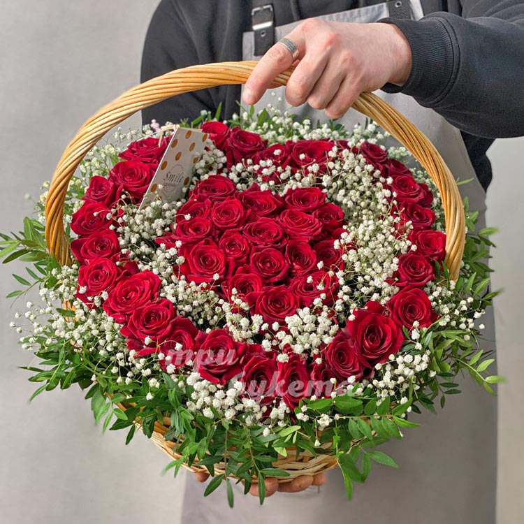 Композиция из 45 роз в виде сердца