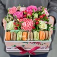 Коробка конфет, роз и эустом