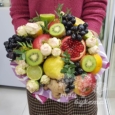 Коробка макарун с розами и фрезиями