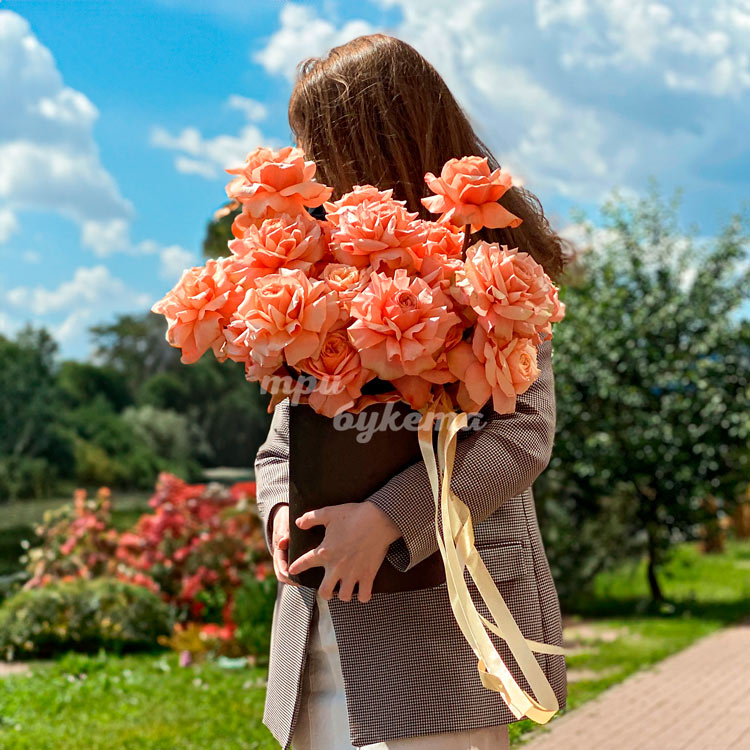 Коробка с персиковыми розами Кахала