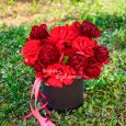 Коробка зеленых гвоздик, роз и вибурнума