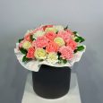 Коробка желтых хризантем с розами