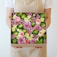 Корзина ярких пионов, роз и гортензий