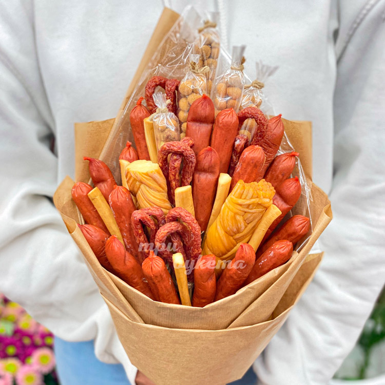 Крафт-букет с колбасками и сыром