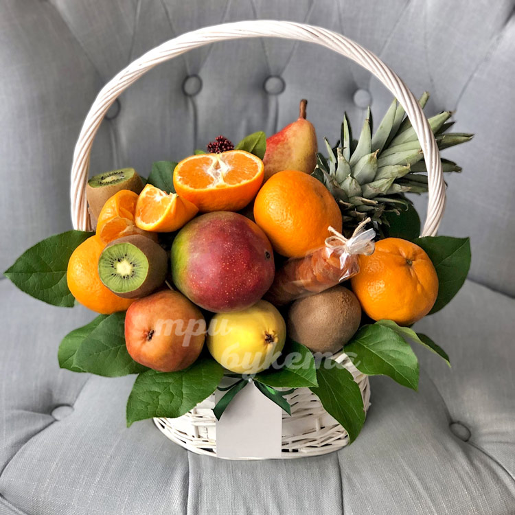 Мандарины, киви и ананас в корзине