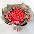 Розовые розы с клубникой