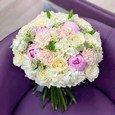 Яркий букет орхидей, гортензий и пионов